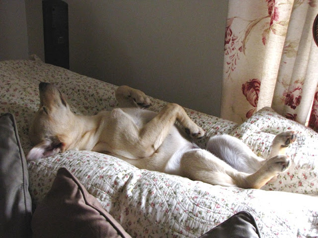 This is a Sandy update, she sleeps like this all over the house, but especially likes to sleep on my quilts in the lounge on the back of the couch:) Such a sweet girl!