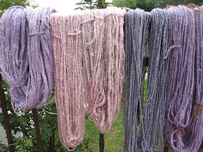These are the skeins Jen and I dyed naturally with our mulberries that have just ripened, I think we will make jam soon...